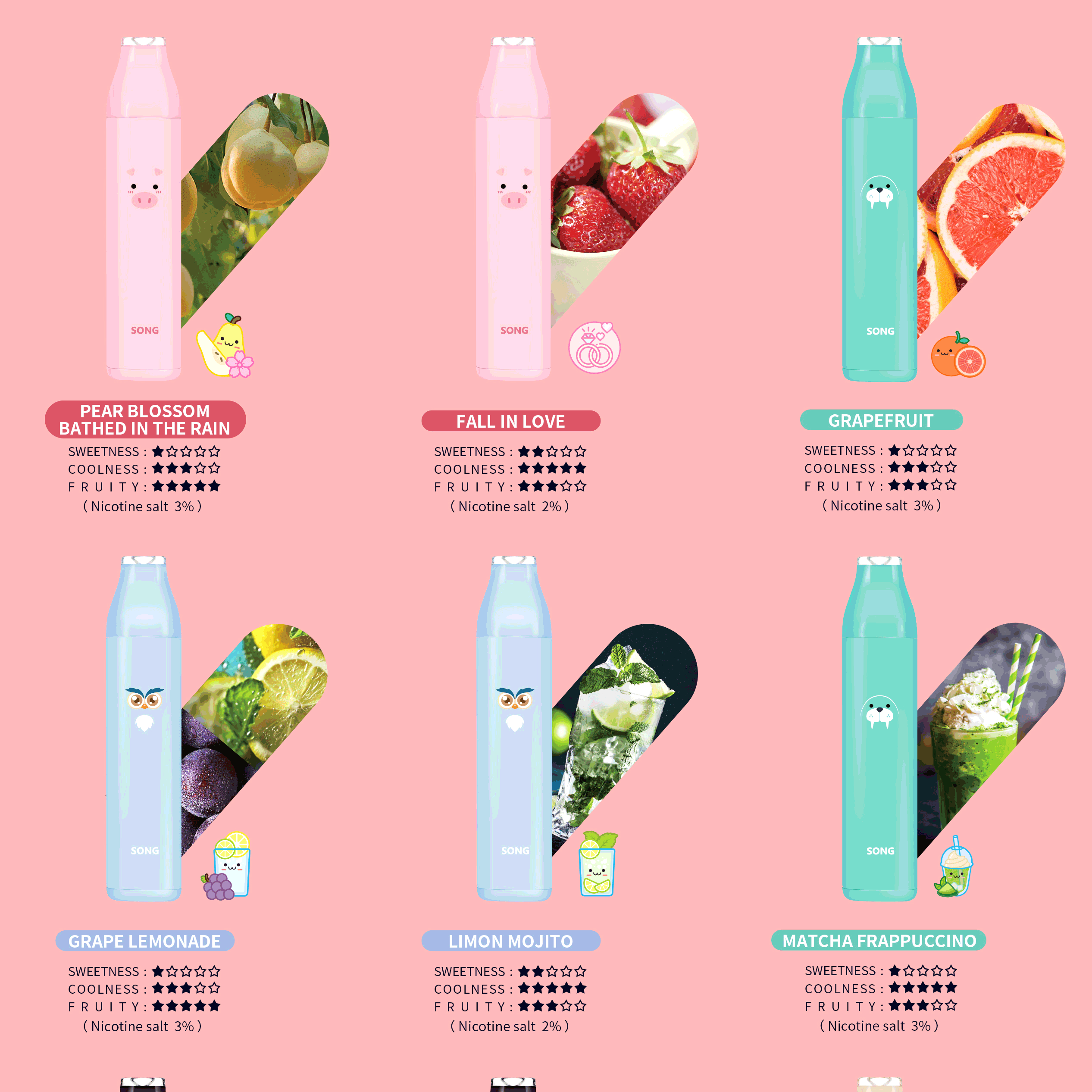 夏日森林、梨子石榴、梨花帶雨、葡萄檸檬水、蜜瓜甜瓜西瓜、奇異果酸橙、黑莓