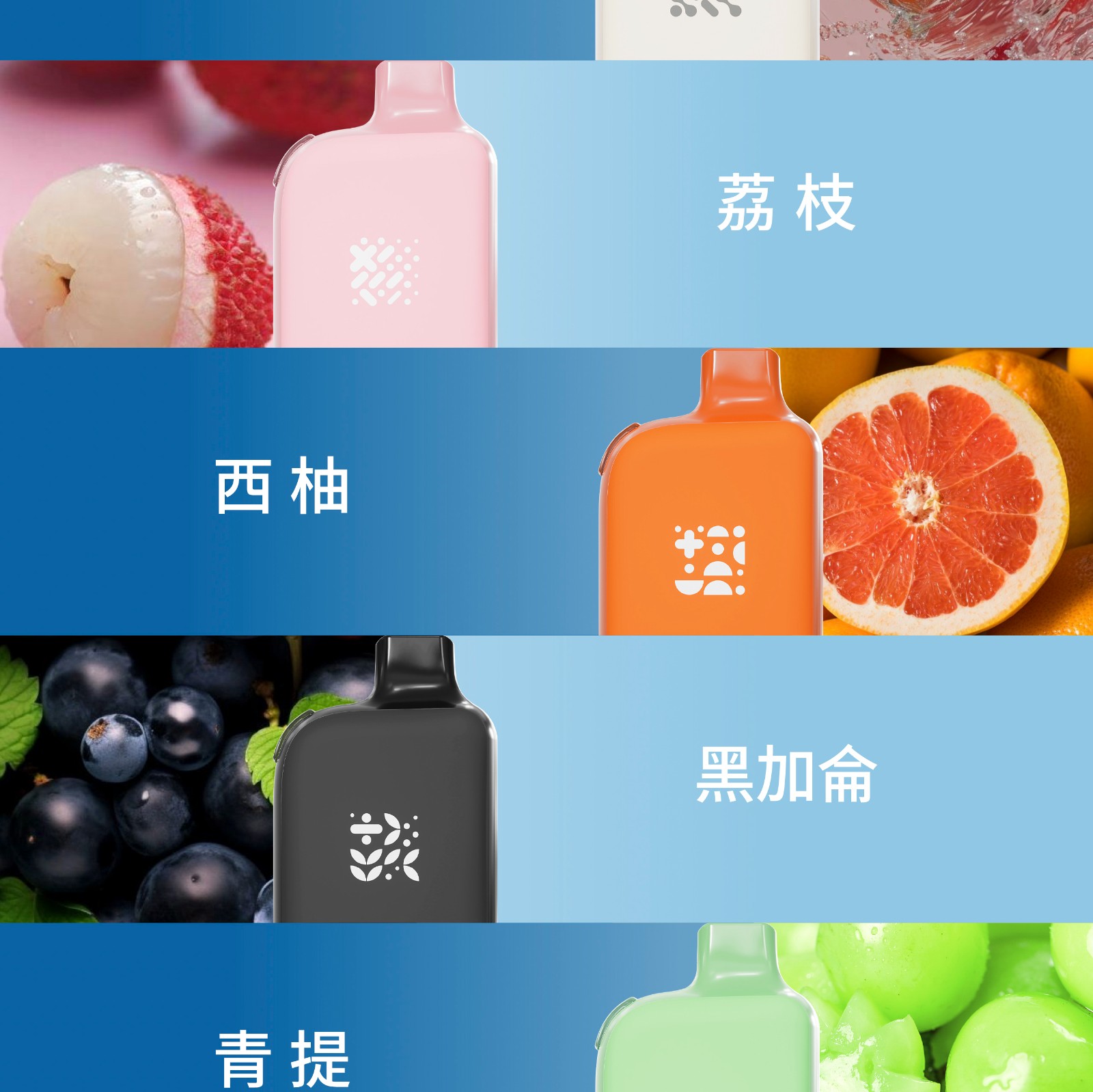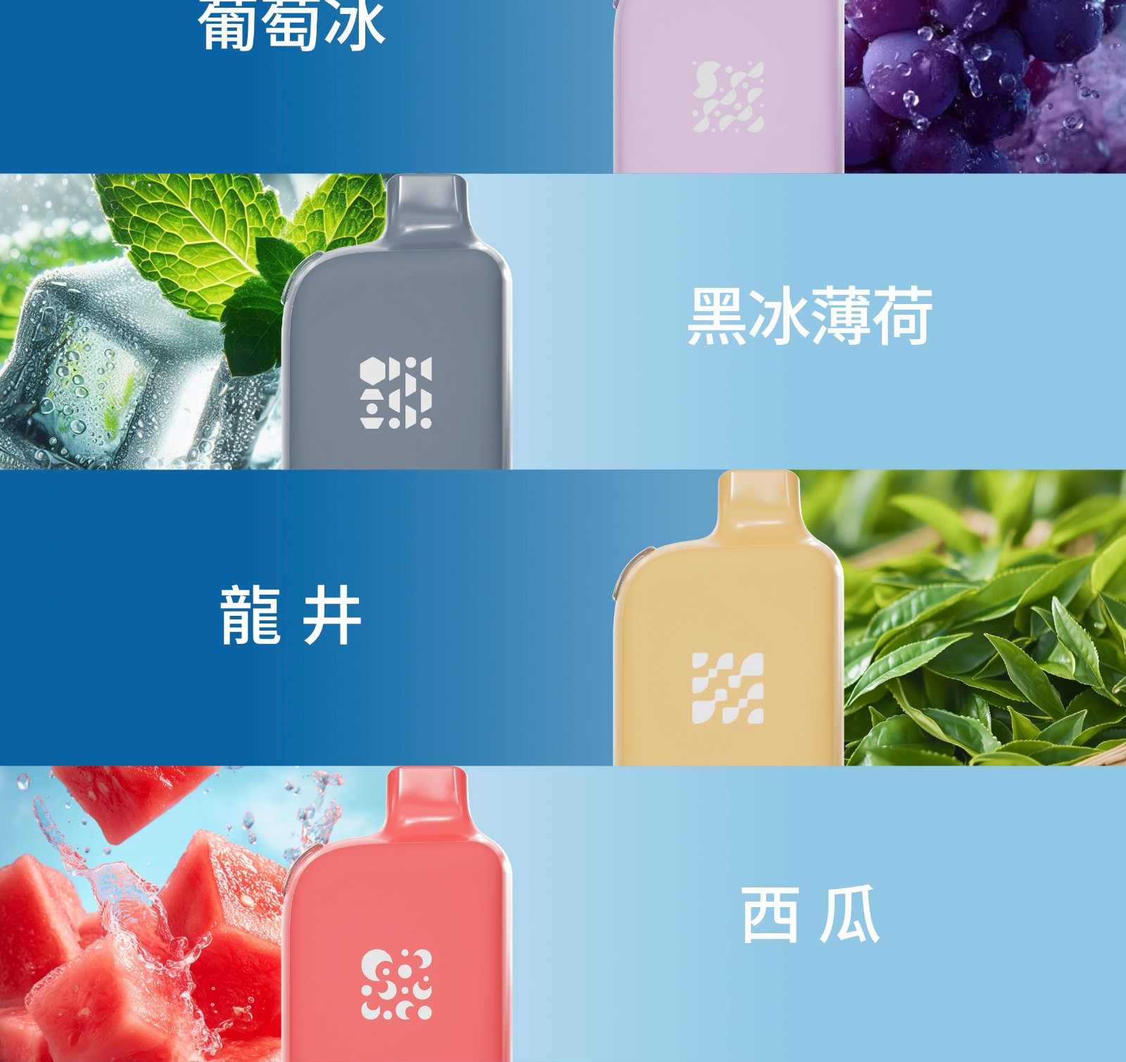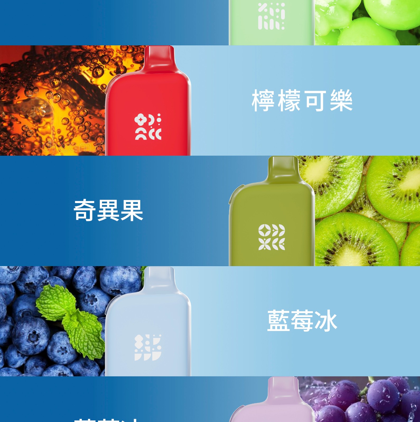 白桃烏龍/荔枝/西柚/黑加侖/青葡/檸檬可樂/奇异果/藍莓/葡萄/西瓜/黑冰薄荷/龍井茶//青蘋果/百香果/楊桃/鳳梨/番石榴